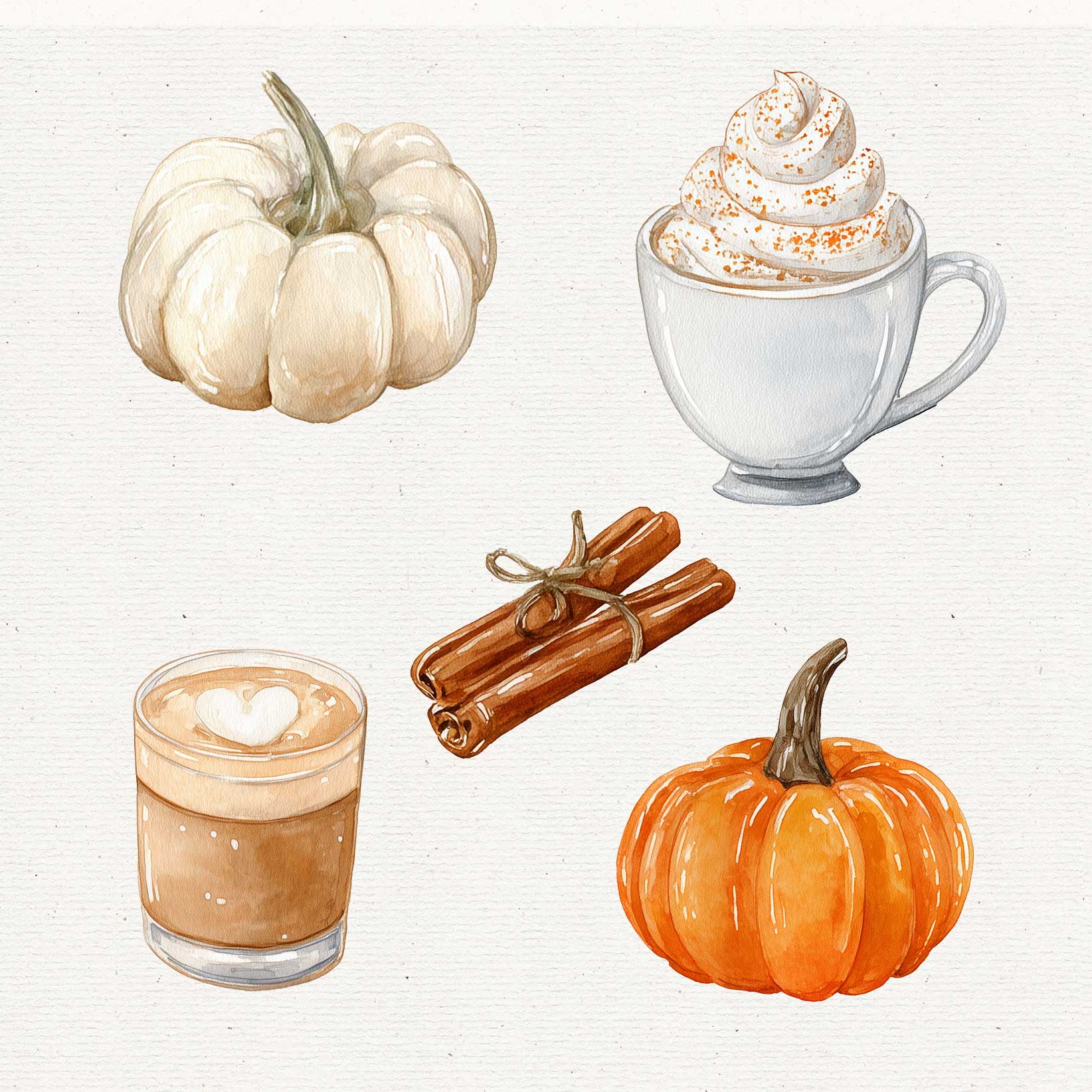 Hi Autumn clipart, set of 30 png graphics with transparent background.